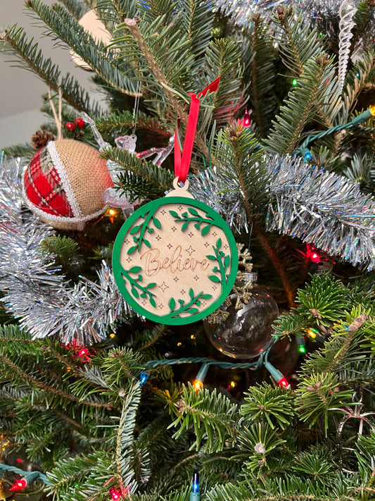 Believe 3D Ornament | Birch and Color | Laser Cut and Engraved | Personalized