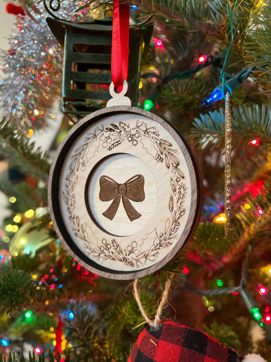 Bow Wooden 3D Ornament | Walnut and Maple | Laser Cut and Engraved