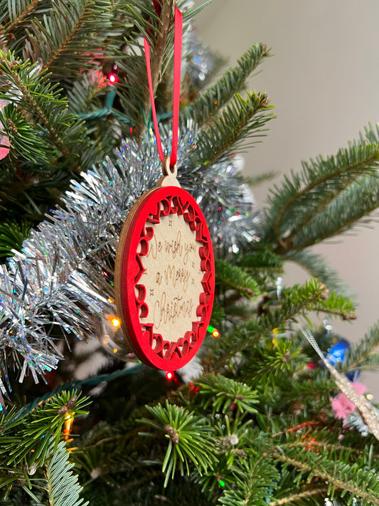Merry Christmas 3D Ornament | Birch and Color | Laser Cut and Engraved | Personalized