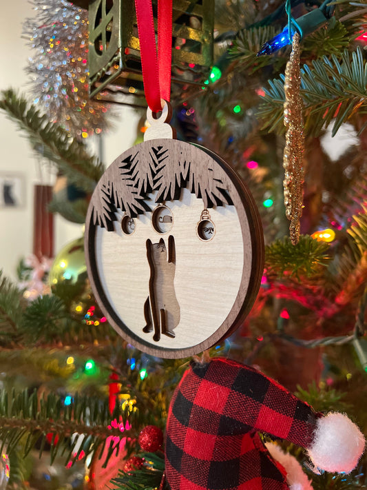 Binxy Cat Wooden 3D Ornament | Walnut and Maple | Laser Cut and Engraved