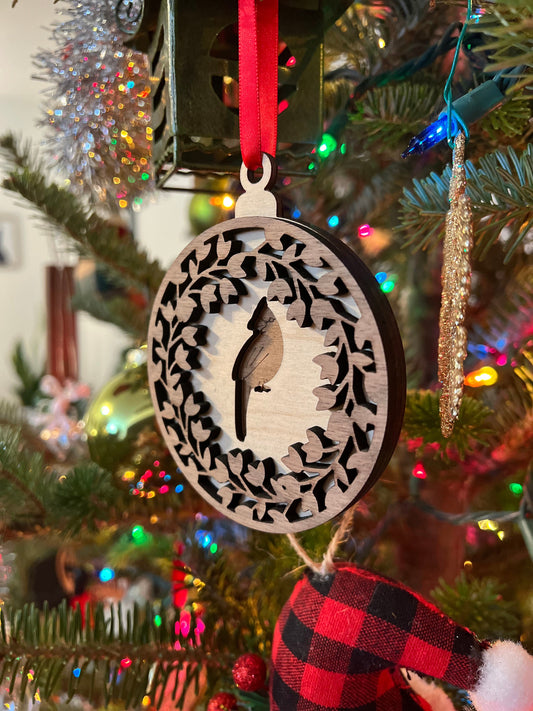 Cardinal Wooden 3D Ornament | Walnut and Maple | Laser Cut and Engraved