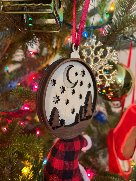 Silent Night 3D Ornament | Birch and Color | Laser Cut and Engraved | Personalized